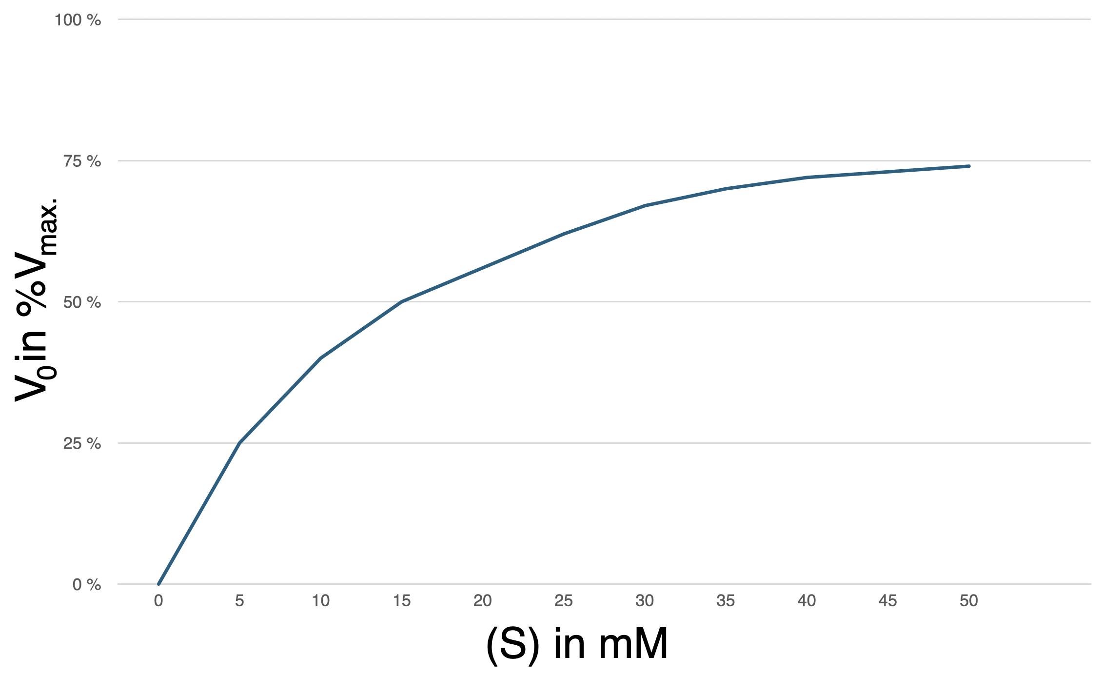 1.35 In einer klinischen Studie zur Analyse der Ammoniak-Konvertierung durch eine modifizierte Urease wird eine Ammoniak-Konzentration von 9,1 g/L betrachtet (molare Masse (Ammoniak): 17 g/mol). Der Michaelis-Menten-Konstante $K_m$ dieser Urease liegt bei 0,5 mol/L.