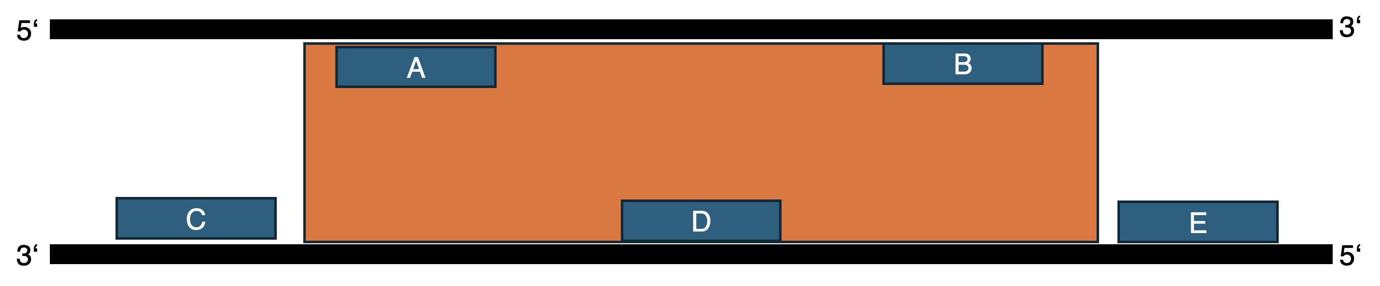 1.63 An welche der angegebenen Stellen (A–E) bindet einer der beiden PCR-Primer bei der PCR zur Klonierung der DNA? Der orange markierte Bereich stellt den Bereich dar, der kloniert wird.