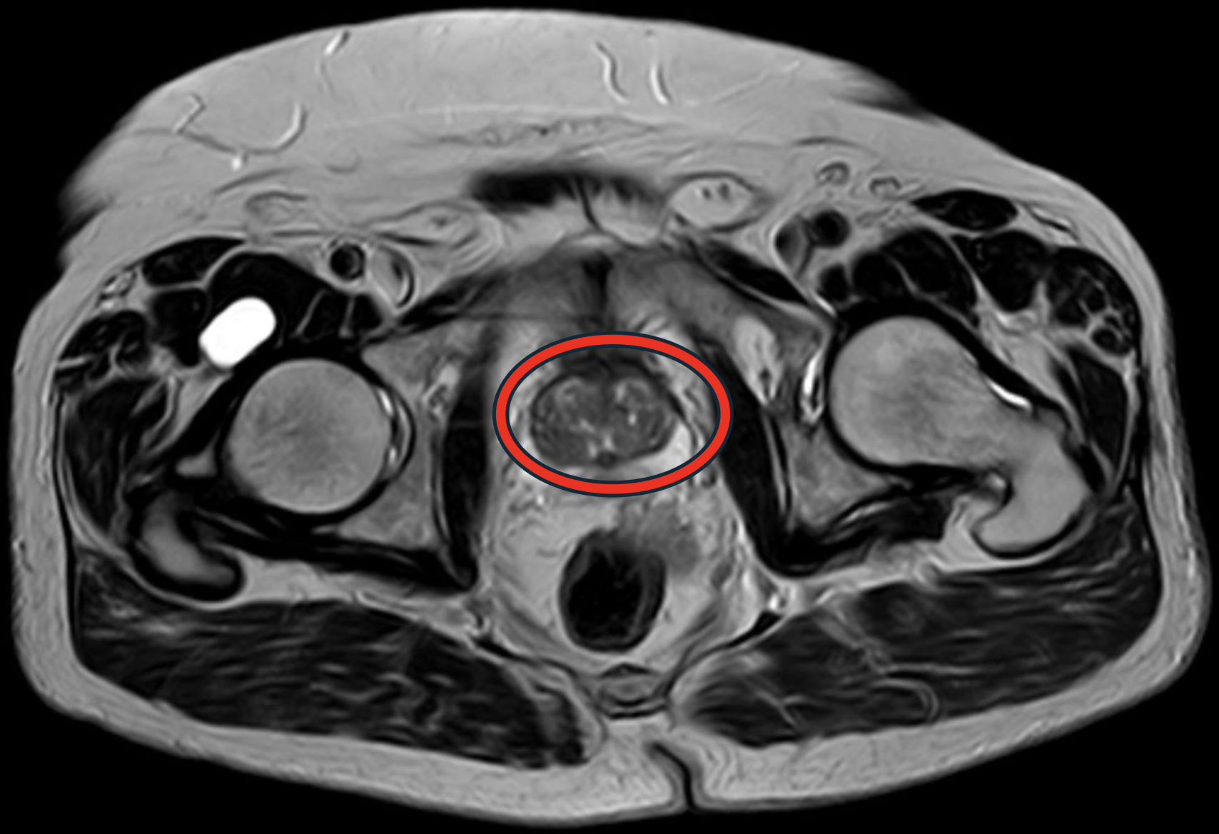 2.67 Das Bild zeigt eine axiale Magnetresonanztomografie des Beckens.