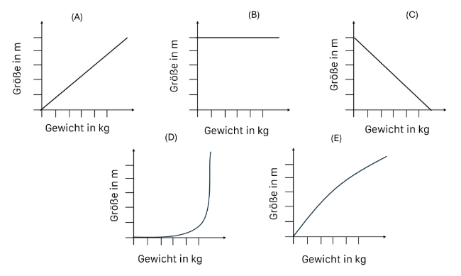 1.9 Der BMI errechnet sich aus: kg/Körpergröße$^2$. Welcher Graph entspricht am ehesten diesem Zusammenhang?