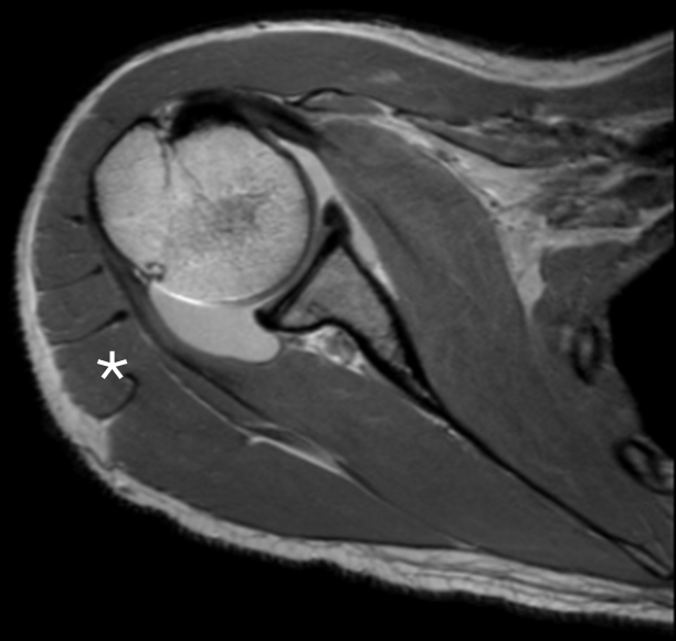 2.128 Welcher der folgenden Nerven trägt typischerweise zu der Innervation mit dem Stern markierten Muskel bei?